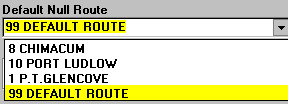 Each of your tanks should be assigned to a route to expedite scheduling. If you wish, you can use this preference to choose a "default" route. What this means is that if you do not specify a route for a given tank, this default will be used. To choose the route to be used as the default, left-click the down arrow down arrow and a drop-down list of all of your routes will appear: