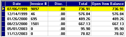 4. All of the open invoices for this account will be displayed in the grid with the oldest ones at the top of the list, like this:
