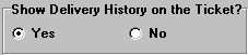 If "Yes" is selected, the Delivery History will be shown on the Lynx Truck Ticket. Included will be date, gallons delivered, and the ending percent for the last five deliveries. This applies whether they are printed from an individual account or printed from the Options button on the Add, Change, Delete Routes window. If "No" is selected, the Delivery History will not be printed.