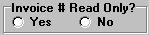 If "Yes" is selected, invoice numbers will not be able to be changed. If "No" is selected, then invoice numbers can be edited.