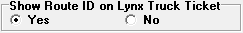 If "Yes" is selected, the Route ID will be printed on the Lynx Truck Ticket. This applies whether they are printed from an individual account or printed from the Options button on the Add, Change, Delete Routes window. If "No" is selected, the Route ID will not be printed.