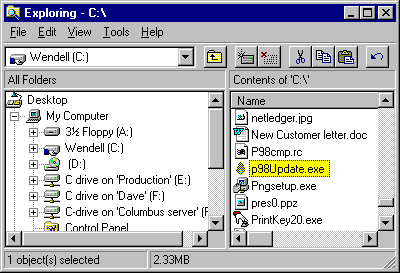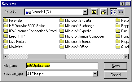Save the update file to your C: drive and DO NOT change the file name "p98Update.exe".