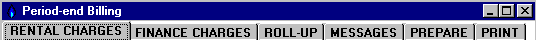 We have made some changes to the Period-end Billing process that will make it a easier to use . . . even though at first it may take a little getting used to. For one thing, the sequence of tabs has been re-arranged to look like this: