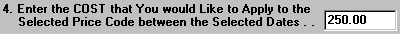 4. Key in the cost you want to use for this Price Code for the selected period of time, like this: