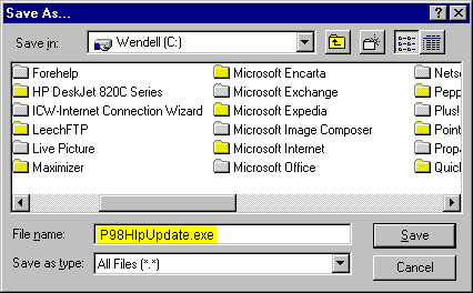 Save the update file to your C: drive and do NOT change the file name "P98HlpUpdate.exe".