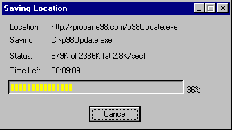 The Help System will now be downloaded onto your hard disk and placed in the file called P98HlpUpdate.exe. As it's downloading, a window with a progress bar will appear. Like this: