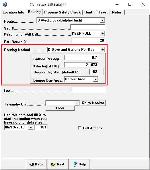 7. This will display the routing method, interval type, and other routing information relevant to this tank.