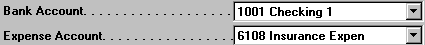 4. From the drop-down lists, left-click a bank account to which the cash receipt will be debited and then left-click the expense account to be credited:
